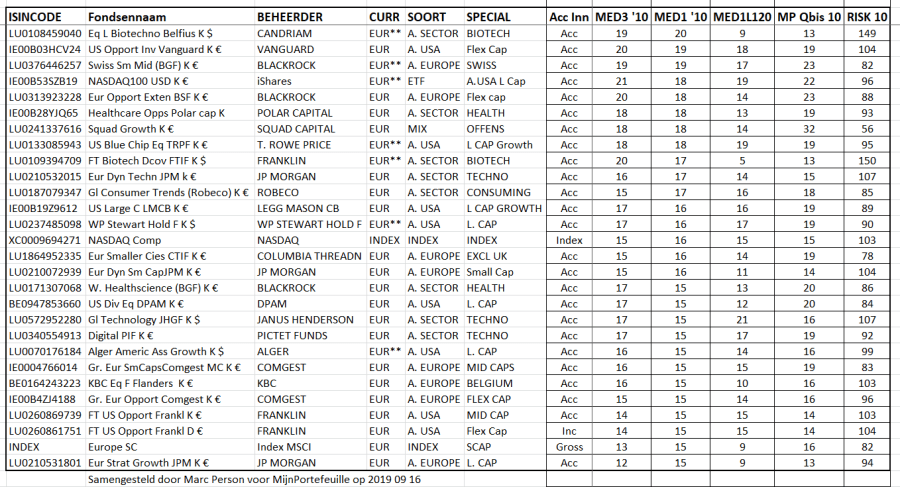 1. Ik heb mijn databestand door de tijd opgebouwd met fondsen die een award winnen, diegenen die ergens specifiek genoemd worden of waarvan ik de fondsmanager ontmoet heb en ook via tips of vragen van onze lezers.