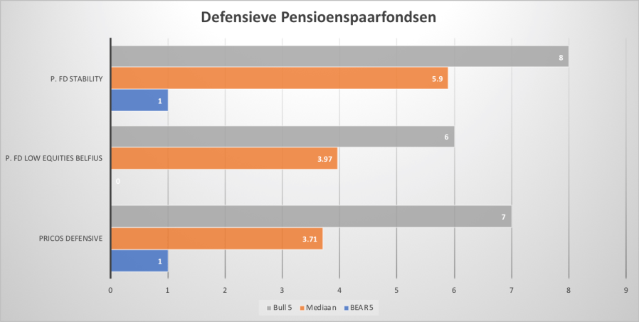 Uiteindelijk is er maar één defensief pensioenspaarfonds dat goed scoort, nl. BNP Paribas Stability. Als enige fonds behaalt dit de grens van 4,75% rendement.