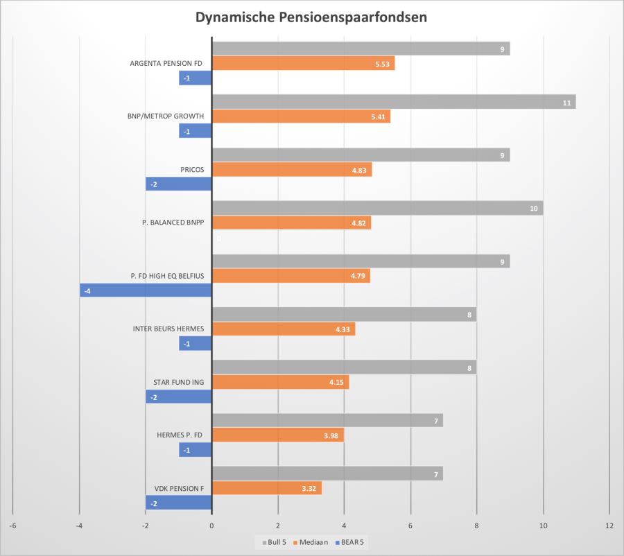 De eerste groep zijn pensioenspaarfondsen die volgens onze methode het beste scoren: