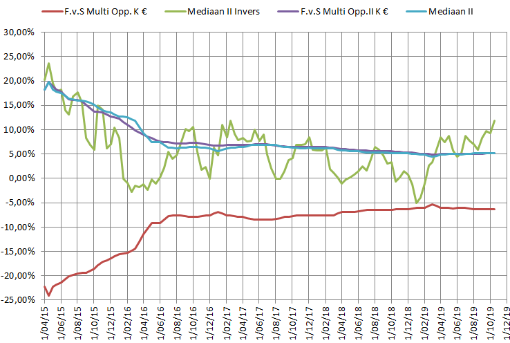 Die grafieken laten duidelijk zien dat de fondsen bij het jaareinde van 2018 op een dieptepunt zaten. Dat maakte dat 2018 een niet al te best jaar was voor de beleggers.