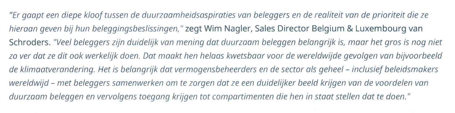 Bij het gesprek dat ik had over deze studie met Wim Nagler, Sales Director voor België en Luxemburg bij Schroders botsten we op enkele bizarre vaststellingen bij de “Belgische” resultaten.