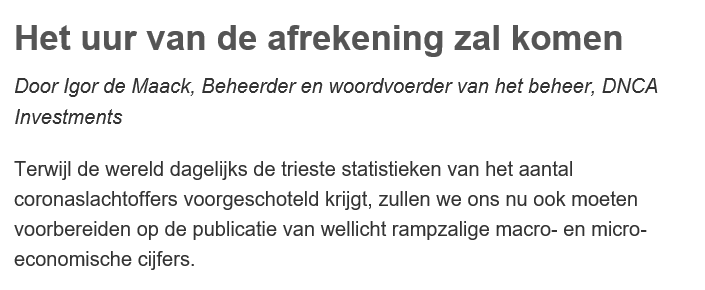 Uittreksel uit een Nieuwsbrief van DNCA dd 14 04 2020