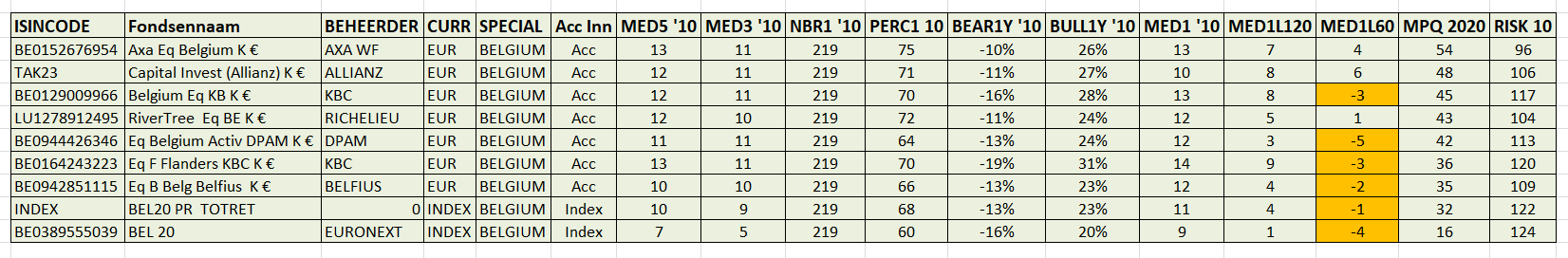 Toch opmerkelijk: de meeste fondsen verslaan met bravoure de index, de BEL20. Dat het Axa-fonds aan de top van de selectie komt is eigenlijk geen nieuws. Als we een paar weken geleden de Morningstar Awards bespraken, dan hebben we daar al gezien dat dit fonds met de Award aan de haal ging.
