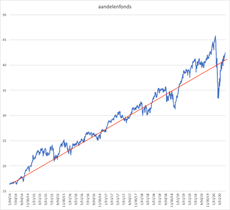 Bekijken we even de koersgrafiek van een doorsnee aandelenfonds over de voorbije jaren.