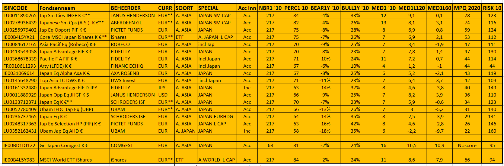Een lezer vroeg ons om ons licht eens laten te schijnen op het fonds Growth Japan van Comgest.  Dat heb ik gedaan, maar ik zou aanbevelen om dat fonds zeker niet te gaan vergelijken met de anderen want het is veel recenter opgestart dan die anderen.  Het zou best kunnen dat die beperkte periode in het voordeel speelde van het fonds van Comgest.