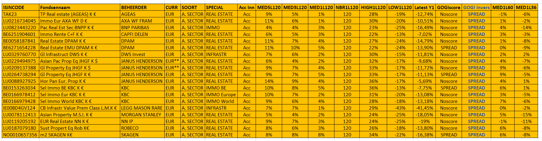Op het moment dat heel wat fondsen op hun all-time-highest noteren, is er ook een sector die blijkbaar op een dieptepunt terecht is gekomen. De meeste van die fondsen krijgen dan ook een SPREAD van de GOGI Invers.