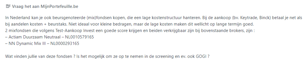 In de reactie van Bruno valt ook op dat het zelfs DB al is opgevallen dat mixfondsen niet meer je dat zijn. Dat blijk uit de opsomming: van de 6 tips zijn er 4 aandelenfondsen… en dat voor een defensief beleggingsprofiel.