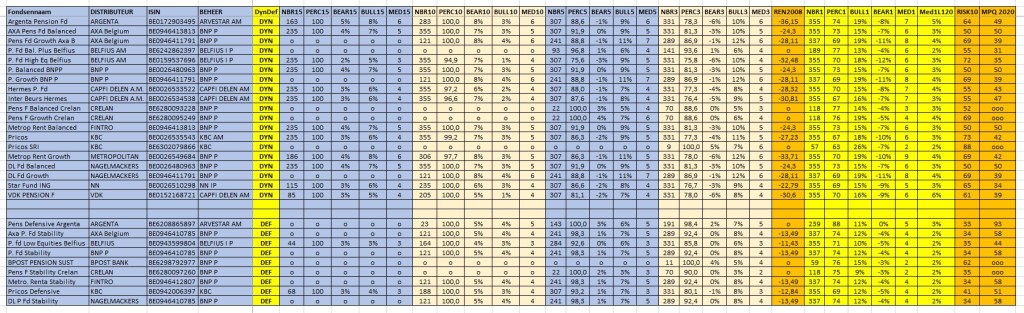 We hebben alle cijfers bij mekaar gebracht zodat je aan de hand van het mediaan rendement, onze MP Quality-indicator of rekening houdend met de Risk-factor je keuze kan maken.