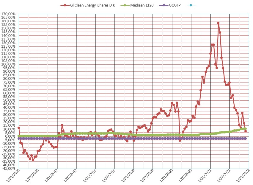 Als men weet dat het mediaan jaarlijks rendement sinds 2009 tot op 1 12 2021 zo’n 3% is, dan voelt men al onmiddellijk dat er iets extreem en uitzonderlijk gepasseerd is. Als men de mediaan berekent van de jaarrendementen behaald tijdens de laatste 6 maanden (1 07 2020 tot 1 12 2021) = 34%, dan komt men al gauw tot de vaststelling dat de ballon leeg loopt. Weer naar zijn gemiddelde van 3% per jaar ?