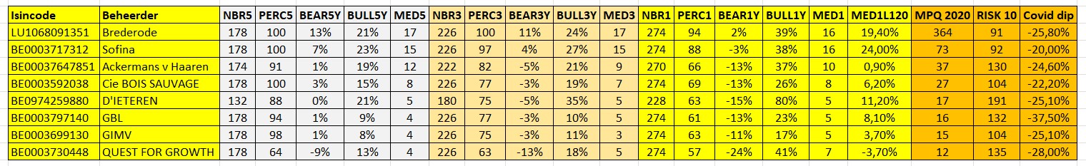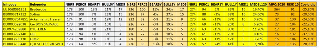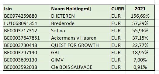 Die tonen met meer zekerheid welk er dan wel interessant zijn: normaal screen ik geen aandelen. Er zijn echter wel wat overeenkomsten tussen holdings en fondsen zodat hier toch een poging gedaan heb om deze cijfers te bekomen.