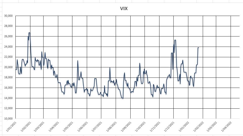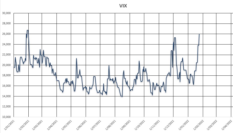 Om af te sluiten een barometer: echter die van de angst of de VIX