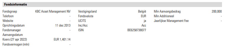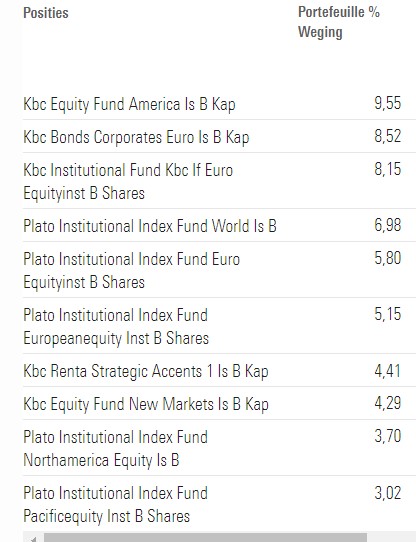 Ze zijn bij KBC ook overtuigd dat ze in alles de beste zijn, want alle onderliggende producten van dit dakfonds komen uit de eigen instelling.