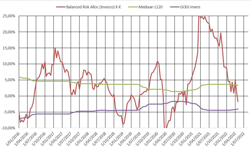 Alhoewel je op de grafiek kan zien dat het mediaanrendement zelfs een tijd negatief was, geeft onze MP Q dit fonds nog 46.