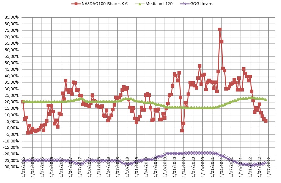 Je kan nu stellen dat de NASDAQ eigenlijk min of meer een sectorfonds is. Voor je dat element gebruikt om je gelijk te halen, ga je dan best eens hier (GOGIgrafiek van de Smart Dynamic) kijken. Daar vind je nog voorbeelden van fondsen voor dewelke de GOGI Invers de ver-van-mijn-bed-show betekent.
