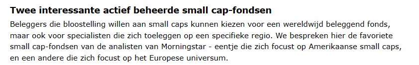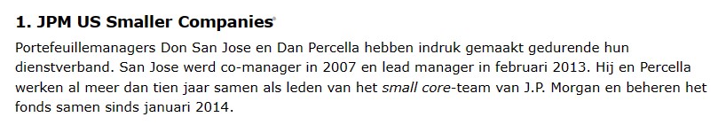 Het JPM US small caps heb ik wel gehad. In vergelijking met andere US small Caps toch bij de betere. Als we appels met appels vergelijken.