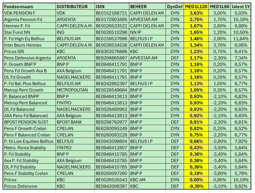 Er zit ook een bevestiging van onze stelling in jouw vraag. Wij tipten op Argenta omdat die een hoog mediaan rendement haalden. Die hoge mediaan is ook voor andere fondsen een interessant selectiemiddel.