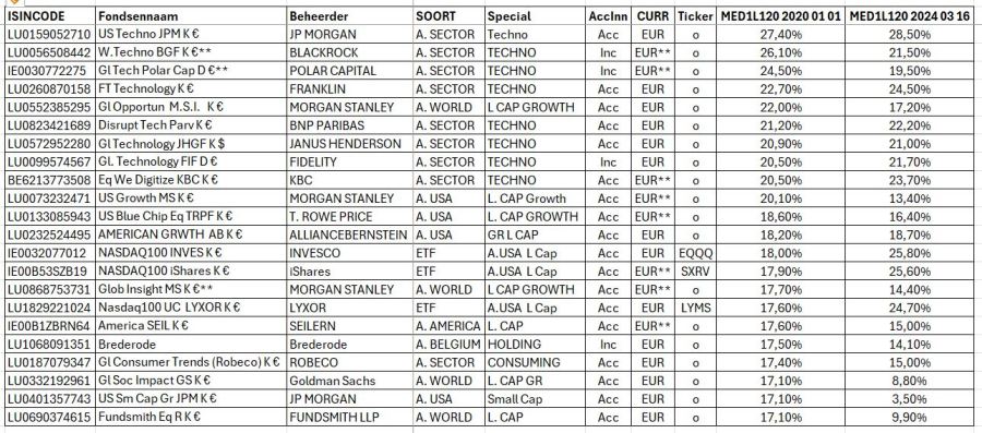 draait het eens om, neem als basis 2024 en vergelijk met 2020. In 2020 was Fundsmith slechts enkele maanden op de Belgische markt. En is het lijstje nog hetzelfde? Ik denk het niet, en wat is dan de conclusie?