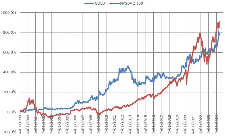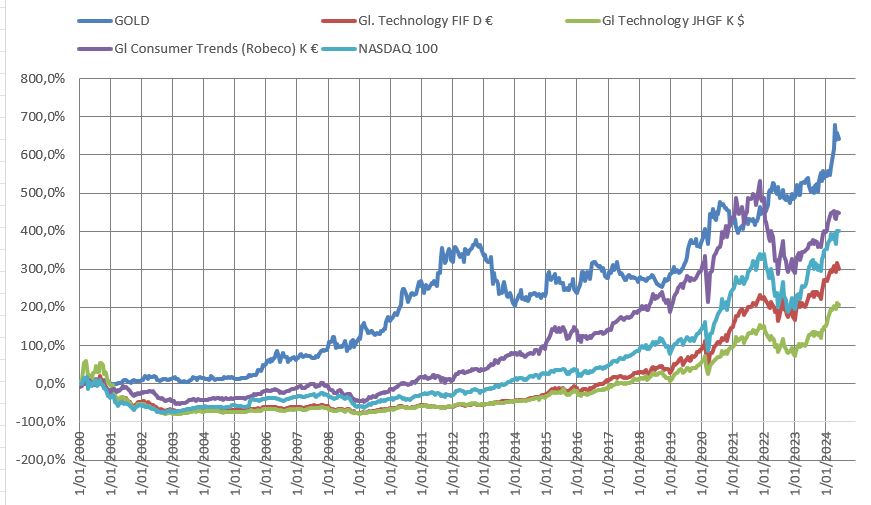 Dat die startdatum van 1 01 2000 zo belangrijk was, valt natuurlijk op omdat op die grafiek goud duidelijk daar, en daar alleen, de leiding neemt. Wat had je anders gedacht ?