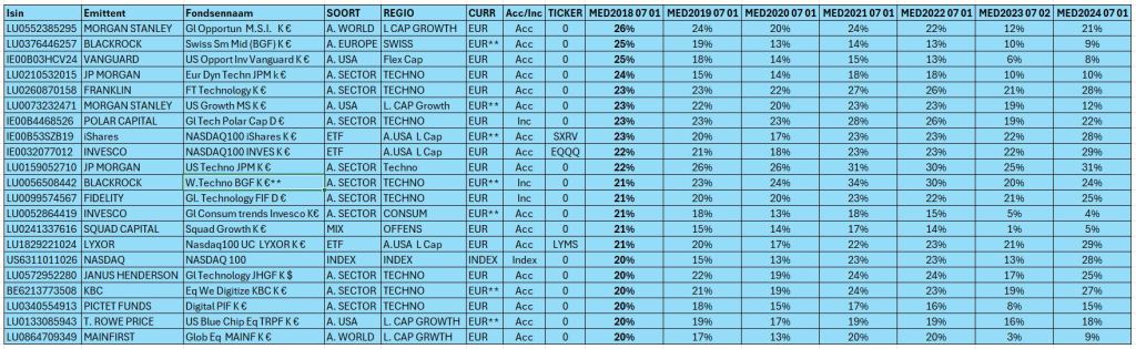 Dit zijn de fondsen met een MED1YL120 van meer dan 20% op 1 07 2024: